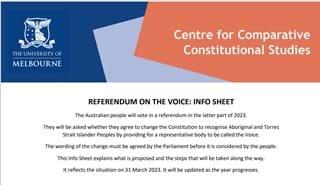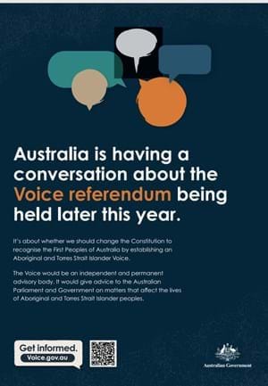 The Australian people will vote in a referendum in the latter part of 2023. They will be asked whether they agree to change the Constitution to recognise Aboriginal and Torres Strait Islander Peoples by providing for a representative body to be called the Voice. The wording of the change must be agreed by the Parliament before it is considered by the people. This Info Sheet explains what is proposed and the steps that will be taken along the way. It reflects the situation on 31 March 2023. It will be updated as the year progresses