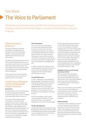 This fact sheet contains information about the Voice to Parliament, a brief history of